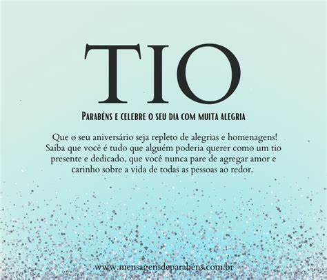 Se você está procurando maneiras de desejar um feliz aniversário para o seu tio querido, você veio ao lugar certo! Neste artigo, vamos compartilhar algumas ideias criativas e únicas para tornar o aniversário do seu tio ainda mais especial. Além disso, no final do artigo, você encontrará algumas imagens relacionadas ao "parabéns para tio querido" que podem ser baixadas. Então, continue lendo!